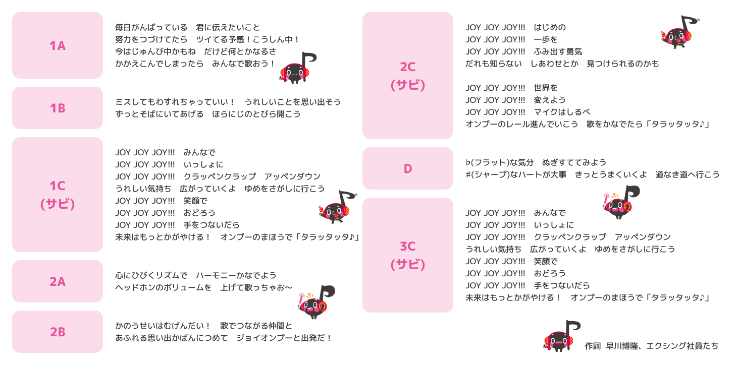 なお、本テーマソングは、AKB48「Teacher Teacher」で日本レコード大賞・優秀作品賞を受賞し、SNSを中心に大きな注目を集めた CUTIE STREET『かわいいだけじゃだめですか?』を手掛けたマルチクリエイター・早川博隆が作曲・編曲を担当。歌詞はエクシング社員から公募で集まったフレーズと、早川博隆氏のフレーズで制作されました。また、歌唱はPokémon Day 記念「POKÉDANCE」でボーカルを務めるなど幅広いジャンルで活躍する実力派ボーカリスト・ななひら、振付は東京ゲゲゲイの初期メンバーとして活動を始め、多方面で活躍するBOWが担当。まさに豪華制作陣による渾身の一曲です。