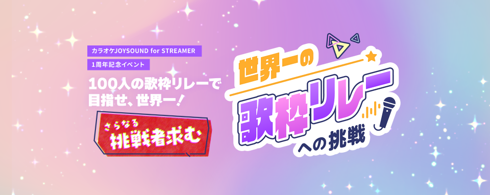 次なる挑戦者、求む!「カラオケJOYSOUND for STREAMER」1周年記念イベント、100人の歌枠リレーでギネス世界記録™達成 !同公式チャレンジのスポンサードを実施決定!