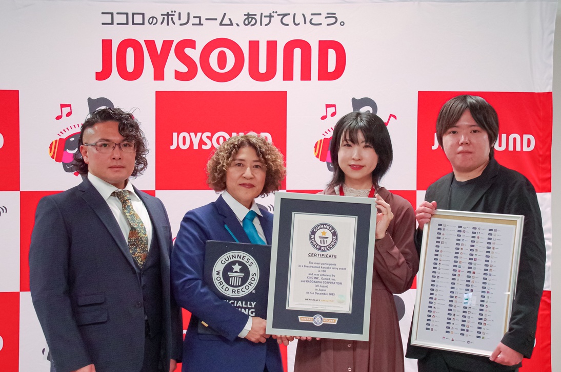 株式会社エクシング(本社:名古屋市瑞穂区、代表取締役社長:水谷 靖)は、ライブ配信・動画投稿者(STREAMER)向けの本格カラオケサービス「カラオケJOYSOUND for STREAMER」の1周年を記念したイベント「世界一の歌枠リレーへの挑戦」を、12月5日(金)・6日(土)に開催しました。また、本イベントにおいて、100名によるカラオケ歌枠リレーが見事完結し、「生配信のカラオケ歌枠リレーイベントに参加した最多人数(Most participants in a livestreamed karaoke relay event)」として、ギネス世界記録™へのチャレンジ認定を受けました。また、応援してくれた皆様への感謝を込めて、期間限定で普段よりお試しいただきやすい価格でのチケット販売や、公式Xでのプレゼントキャンペーンを実施します。