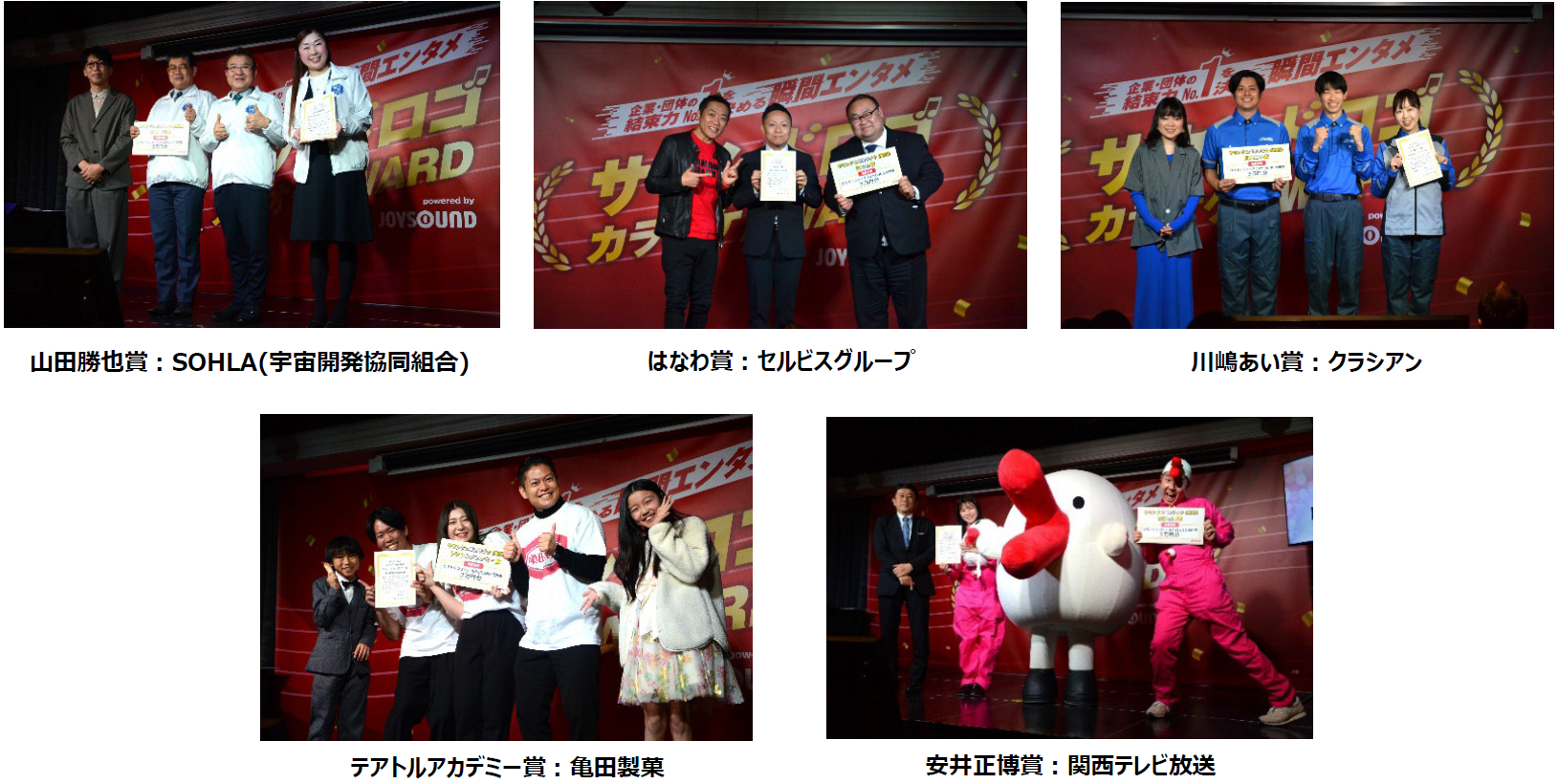 さらに、審査員賞には、これまで数々のサウンドロゴを手掛けてきた株式会社愛印 代表取締役の山田勝也賞としてSOHLA(宇宙開発協同組合)をはじめ、はなわ賞にセルビスグループ、川嶋あい賞にクラシアン、テアトルアカデミー賞に亀田製菓、安井正博賞には関西テレビ放送のサウンドロゴが選出されました。