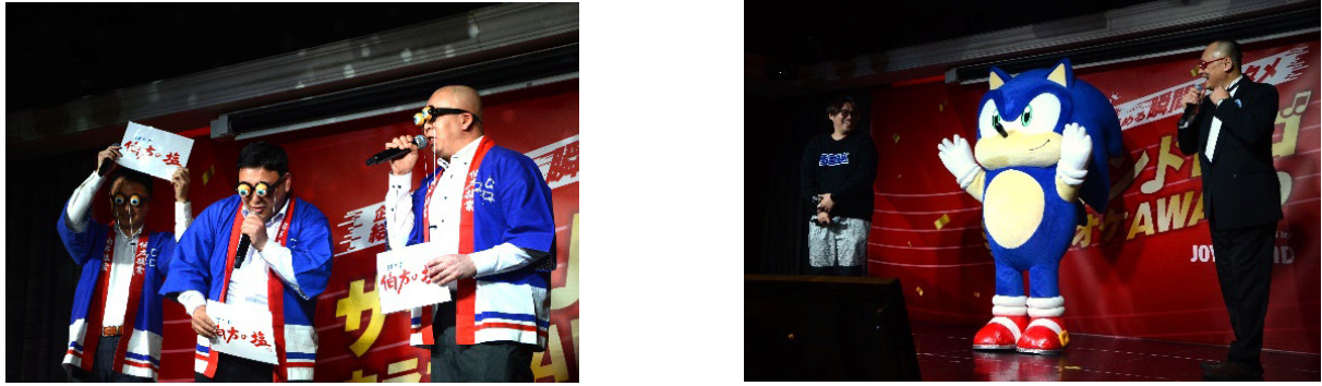 決勝ステージでは、全国のカラオケでの歌唱回数に基づく応援ステージでの加点に加え、当日のパフォーマンスやカラオケ採点の結果を総合的に評価。決勝ステージを前にカラオケで最も多く歌われていたのは、「は・か・た・の・しお」でおなじみの伯方塩業。続く2位には誰もが知る「SEGA」がランクインしており、当日のパフォーマンスにも大きな注目が集まりました。